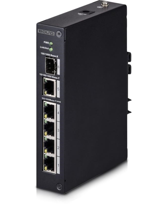 Сетевой коммутатор неуправляемый 1 порт 1000 Base-X, 1 порт 10/1000 Мб/с Ethernet, 4 порта 10/100 Мб/с (PoE); 60 Вт; -30°C~ +65°C
