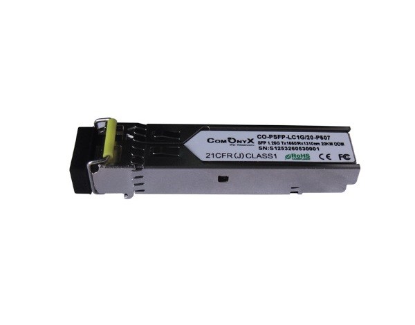 ComOnyX CO-PSFP-LC1G/20-P507 - оптический трансивер SFP WDM, разъем LC, дальность передачи от 0 до 20км, скорость передачи данных 1.25Гб/с, длина волны Tx 1550нм, тип волокна SMF, температурный диапазон -40°C ~ +85°C, питание 3.3Вольт, поддержка DDM.